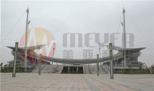 音箱摆位设计:考虑到该体育场的结构形式,音箱摆位首先避免了声聚焦、混响时间长、回声时间长等不良因素;第二提高扩声言语清晰度;第三保证声压覆盖的均匀度