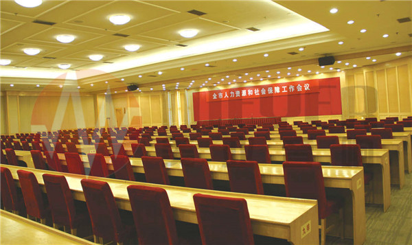 甲方经过层层筛选,最终采纳我方方案。经我方改造:主音箱使用2只德国1寸DSP有源音箱,后场补声使用16只天花喇叭,增加2台8路自动混音台,大大提高话筒声音质量,解决了整个会场扩音问题,得到市长及领导们的一致好评。