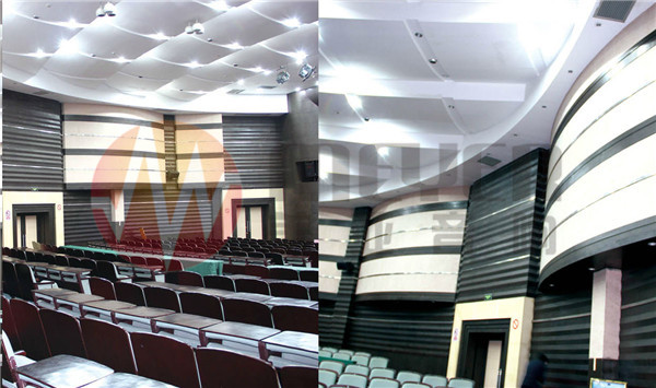 经我方改造:采用4只15寸主扩音箱,4只10寸后场补声壁挂音箱,4只10寸台唇补声嵌入式音箱,结合强指向性话筒,很好的解决了改造前的诸多问题,得到了上级领导的一致好评。
