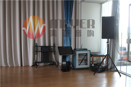 联桥集团多功能厅设计由音响部分和灯光部分组成,音响部分由德国DSP有源音箱扩声系统、点歌系统等组成,灯光部分由两道灯杆组成,其中包括LED染色灯和摇头灯。满足联桥集团的节日年终等各种演出活动需要。